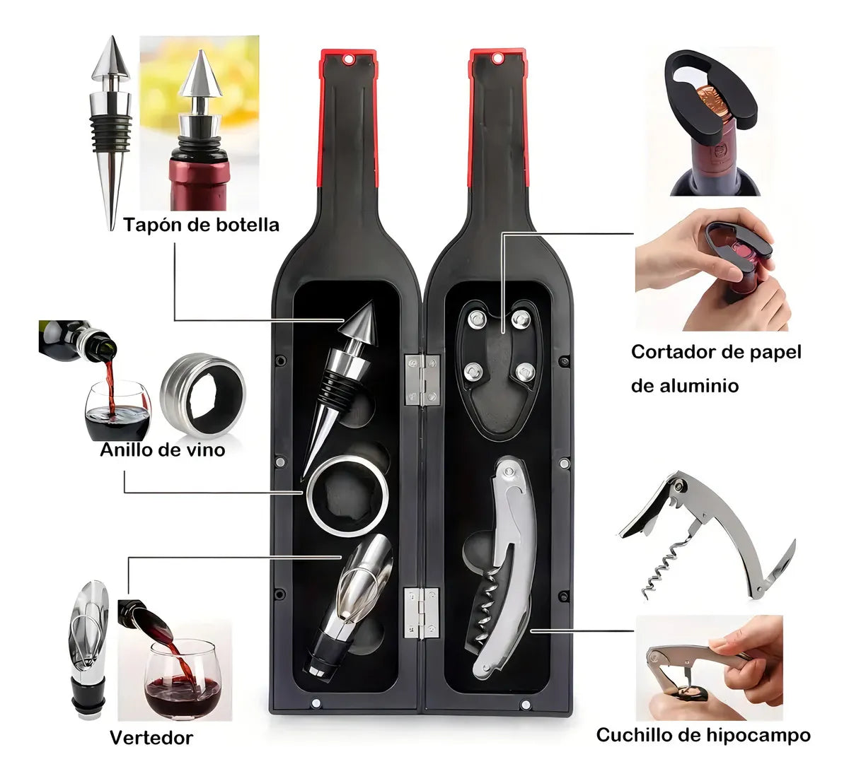 • Set completo 5 en 1 para una experiencia de vino profesional.